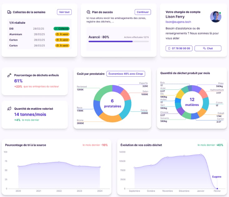 KPIs fiables, registre déchets, hiérarchie des modes de traitement. Vos audits ISO 14001 & EcoVadis sont prêts.